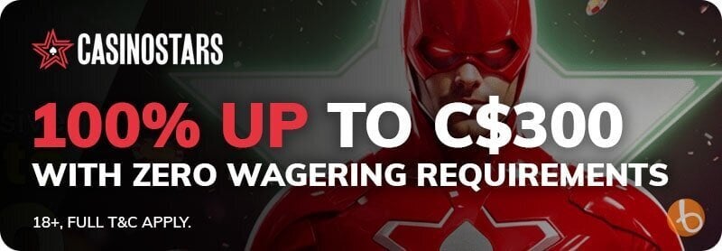 100% match bonus up to C$300 with bonus code STARS1